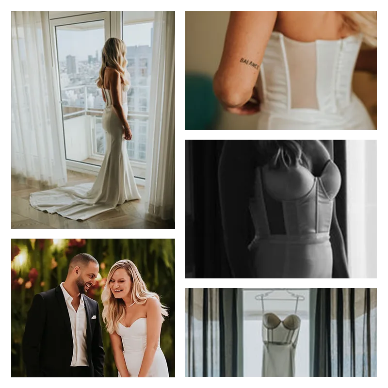 "אשתדל לרשום בקצרה, כי באמת מגיע לה פוסט נפרד. יש לי אינספור מחמאות לרשום על המקום, על הצוות ובכלל על האווירה המשפחתית. היה תהליך כיפי ורגוע ובעיקר – הרגשתי כמו בבית, תמיד בידיים בטוחות. ריקי אישה נדירה, סבלנית ומושלמת עם ידי זהב! והתוצאה הייתה בדיוק בהתאם לציפיות שלי ואף מעבר! היו לי 2 שמלות חלומיות!!! השמלה הראשונה: אהבה ממבט ראשון! ריקי רק התאימה למידות שלי, עשתה כמה תיקונים קטנים שביקשתי – והרגשתי בה נסיכה מהאגדות. כל פעם שלבשתי אותה, אפילו במדידות – עף לי הלב. השמלה השנייה: הגעתי לריקי עם רעיון עיצובי שהיה לי בראש – והיא פשוט הגשימה אותו! שמלה מהממת, קלילה, סקסית ומדויקת. אני באמת ממליצה לכל כלה להגיע למקום הזה – כי כמו שאמרתי, הרגשתי שם בית."